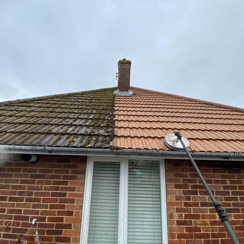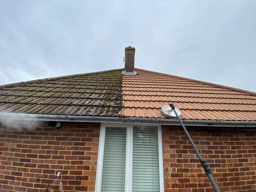 We offer roof cleaning, steam cleaning, moss removal, softwashing, gutter clearing, driveway and patio cleaning, pressure washing and optional surface sealing services.