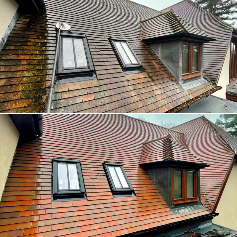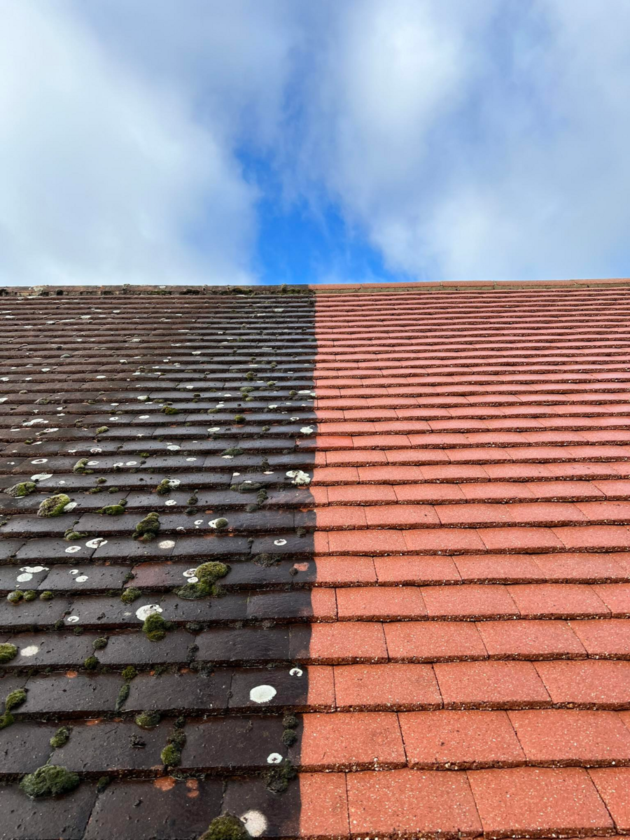 Yes. Our steam roof cleaning method uses controlled low pressure and high heat to safely remove moss and algae without damaging tiles.